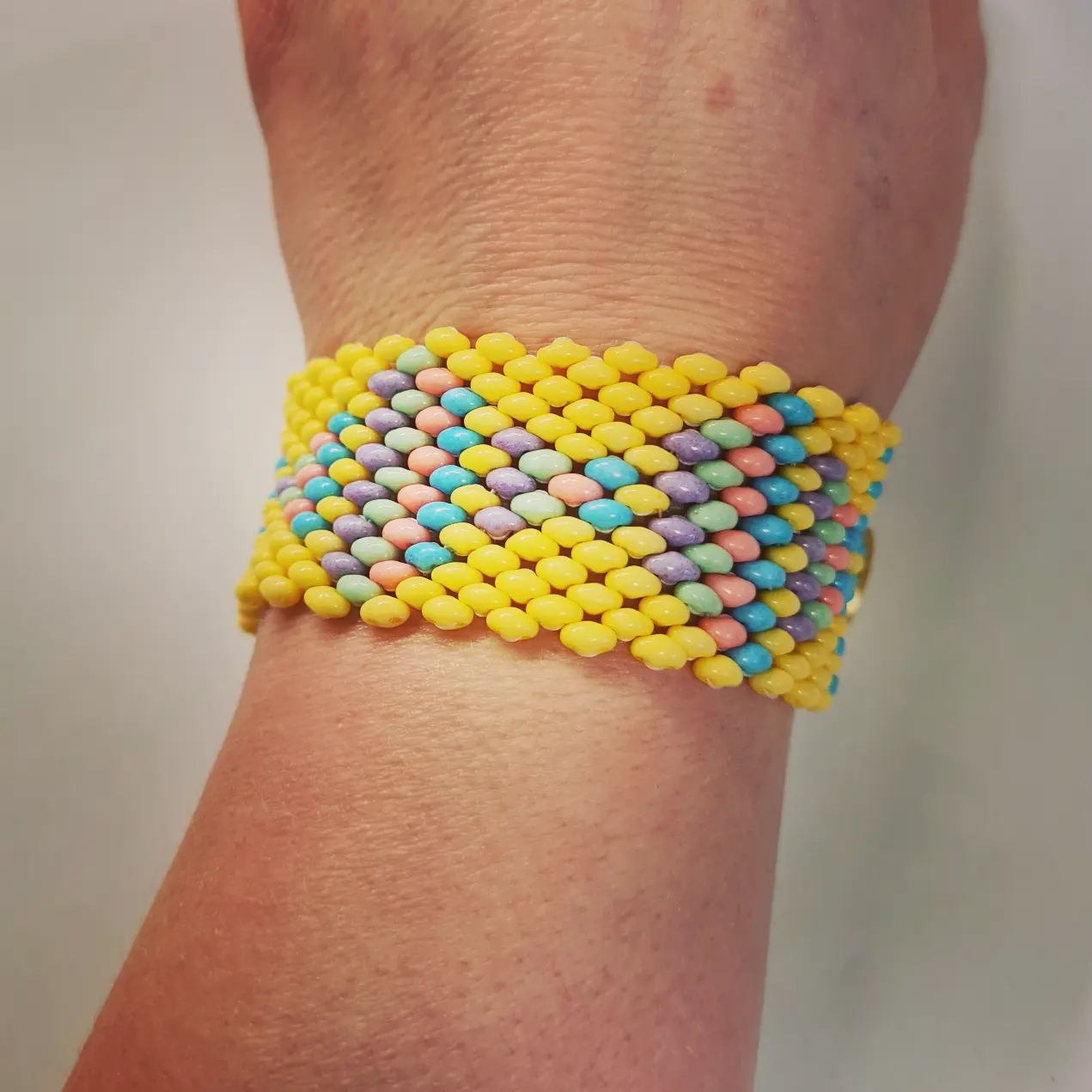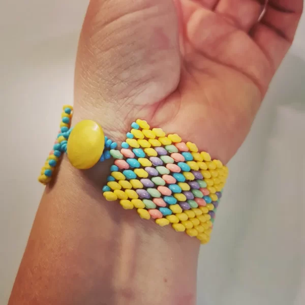 🌸 ArmbÃ¥nd sydd med SuperDuo i pastellfarger og en skinnende knapp til lÃ¥sÂ