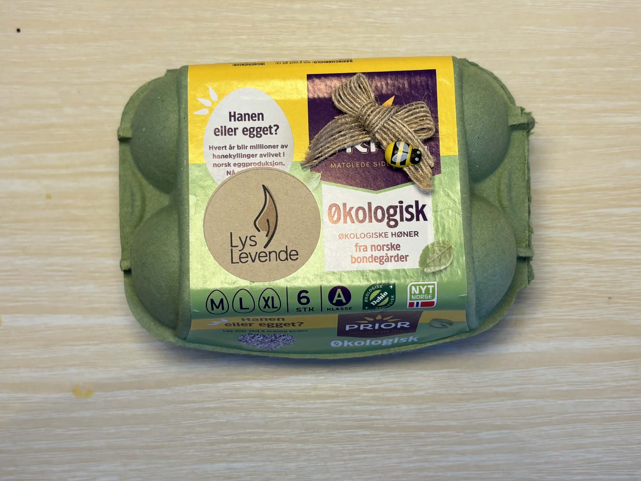 Eggekartongen er valgt med tanke på gjenbruk og et mer bærekraftig uttrykk. Utseendet kan variere – jeg bruker det jeg har og får tak i, men innholdet er alltid det samme: seks Egg, laget for hånd med omtanke.