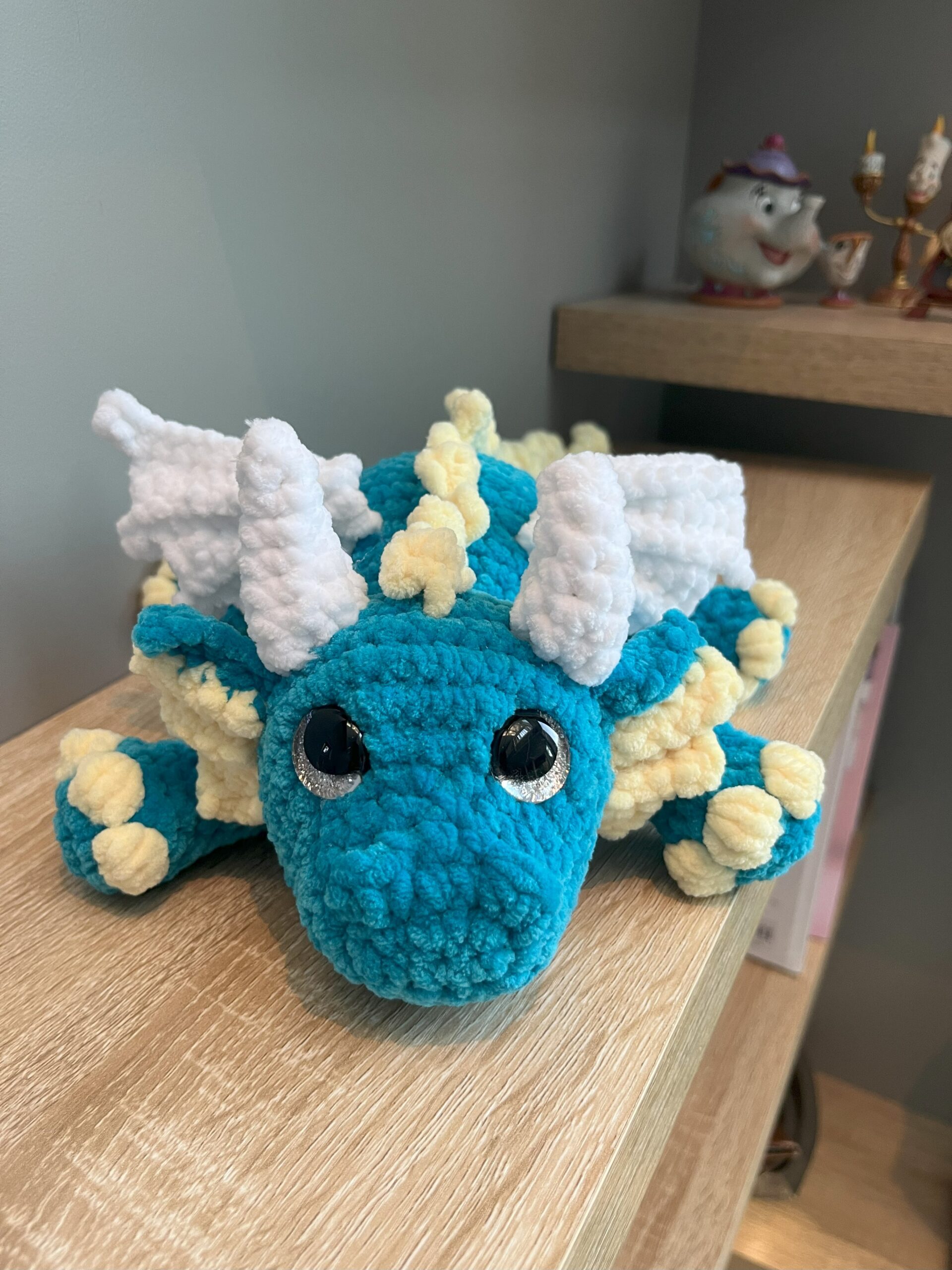 Kategorier: Barn&baby, Barnerommet, Dekorasjoner, Hus & hjem, Kosedyr, Leker, Pynteting Stikkord: blå, chenille, drage, honey bunny, kosedyr, marit`s hobby