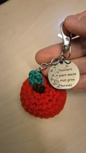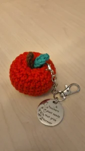 Like fin som veskepynt som den er praktisk, og i tillegg god å holde i hånden – ja nesten som en liten stressball! Alt det en lærer trenger gjennom hverdagen får du i denne betydningsfulle, håndlagde gaven. Velg mellom grønt eller rødt hjerte når du bestiller