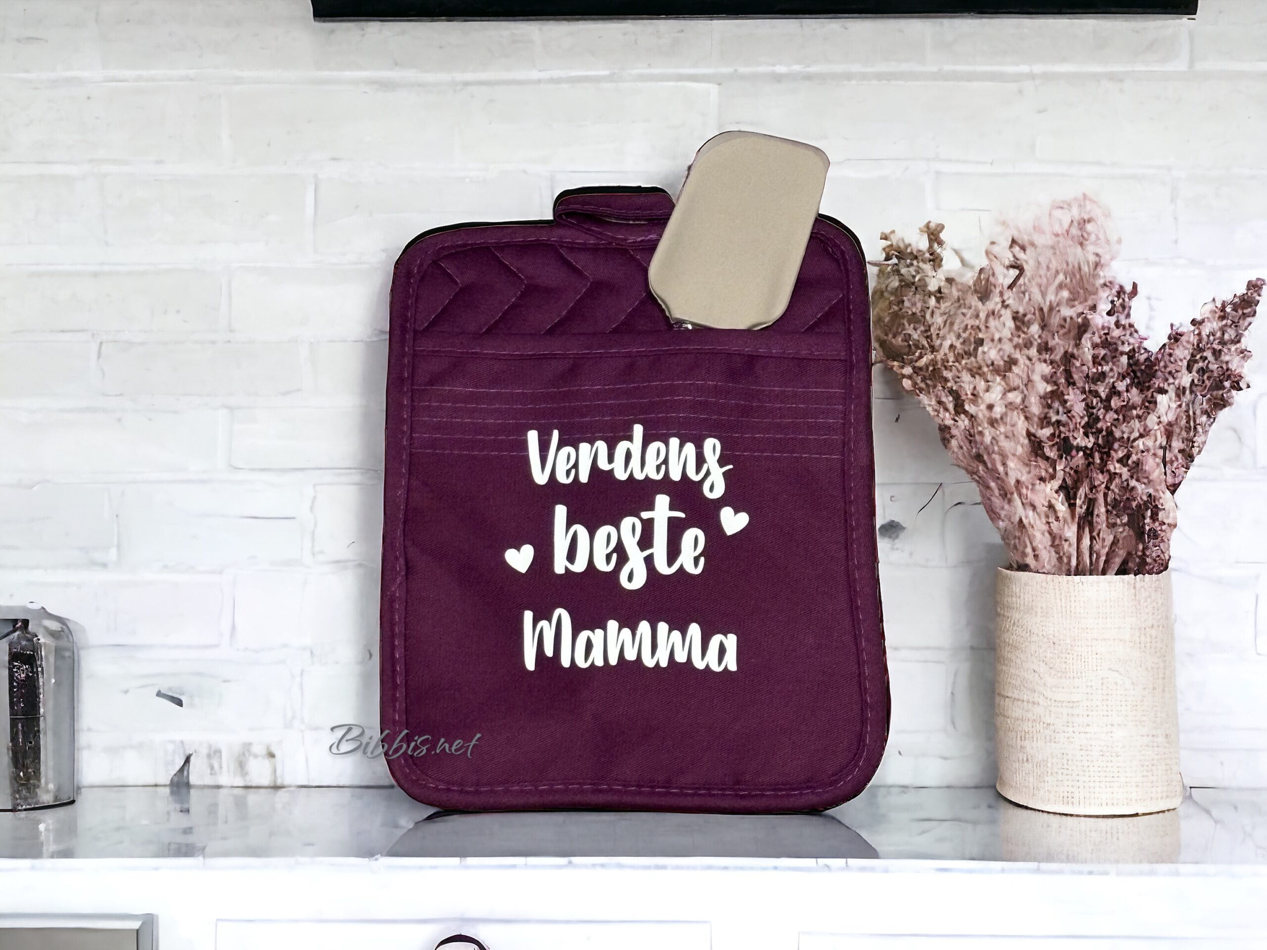 Koselig tekst om mamma, str er 18×23 cm og finnes i fargene sort, grå, lilla, rød og mørkeblå.