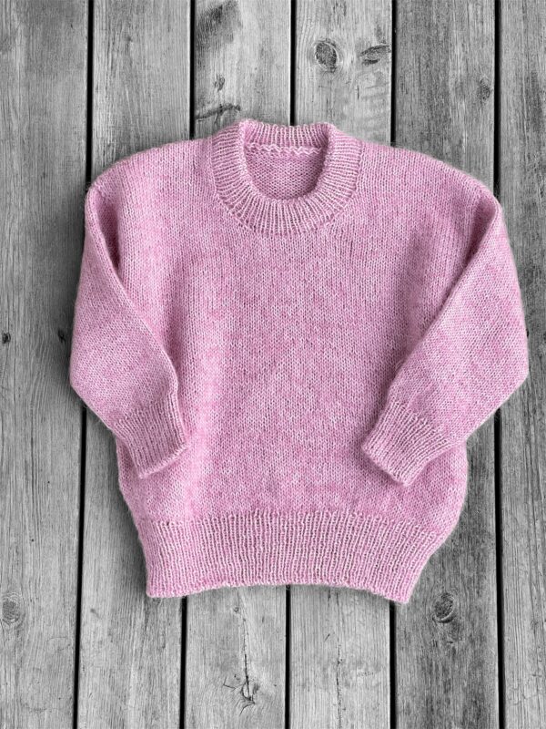 Lett og varm genser strikket i ull/alpakka/mohair/silke. Ikke superwash.
