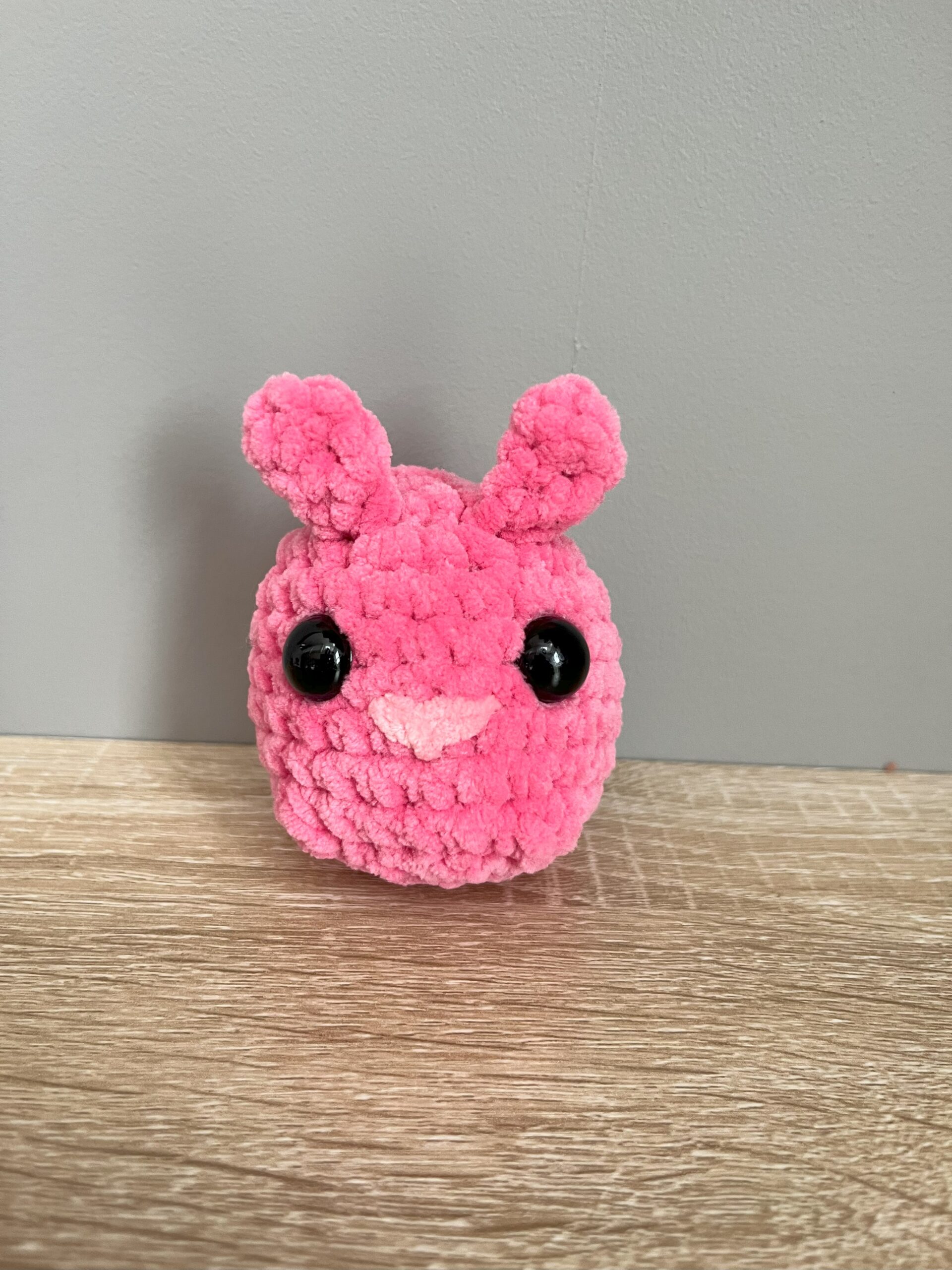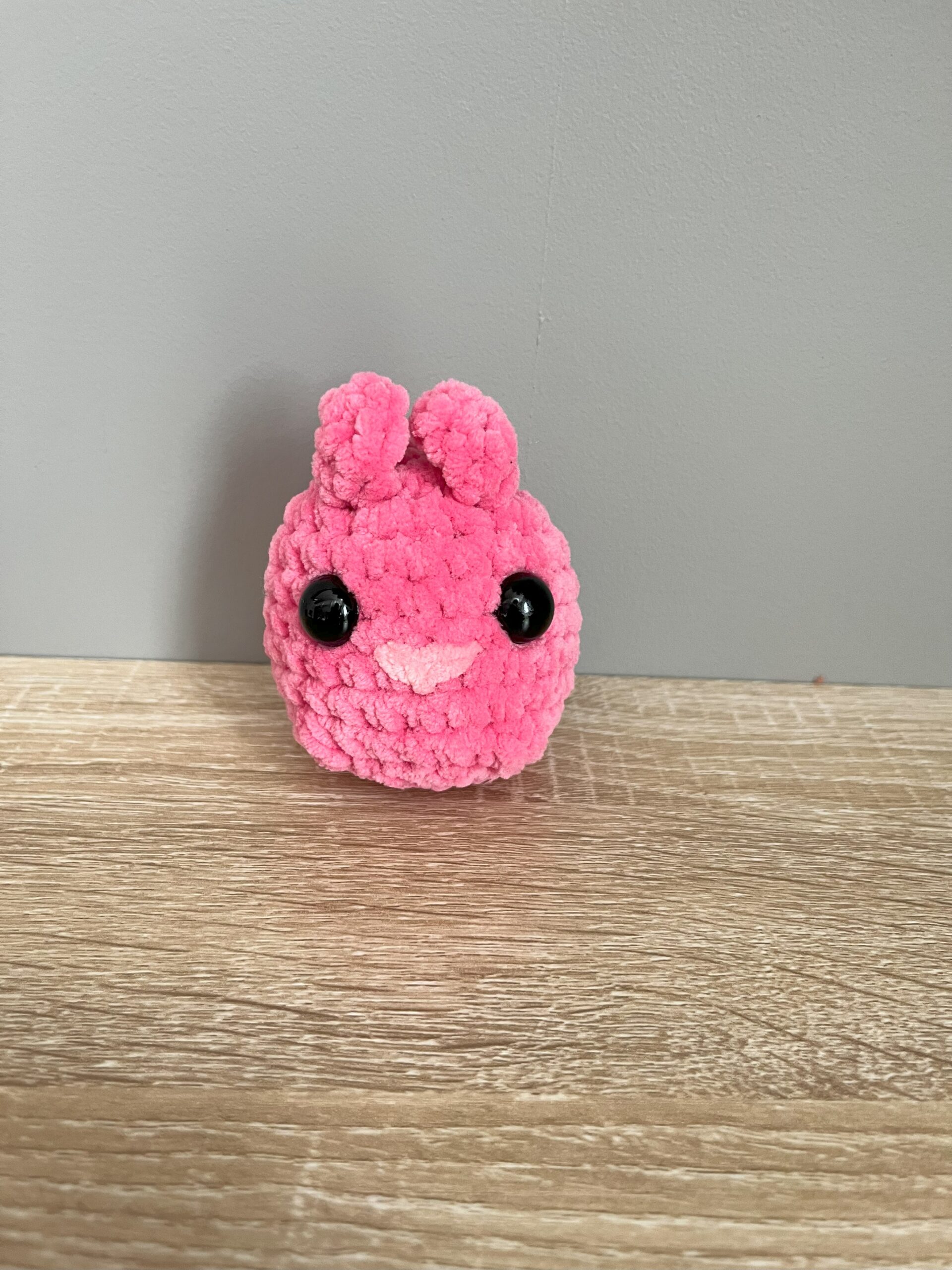Kanin. Kosedyr heklet i honey bunny, et mykt og godt chenillegarn. Høyde ca 8cm. Montert sikkerhetsøyne. Anbefalt alder fra 3 år.