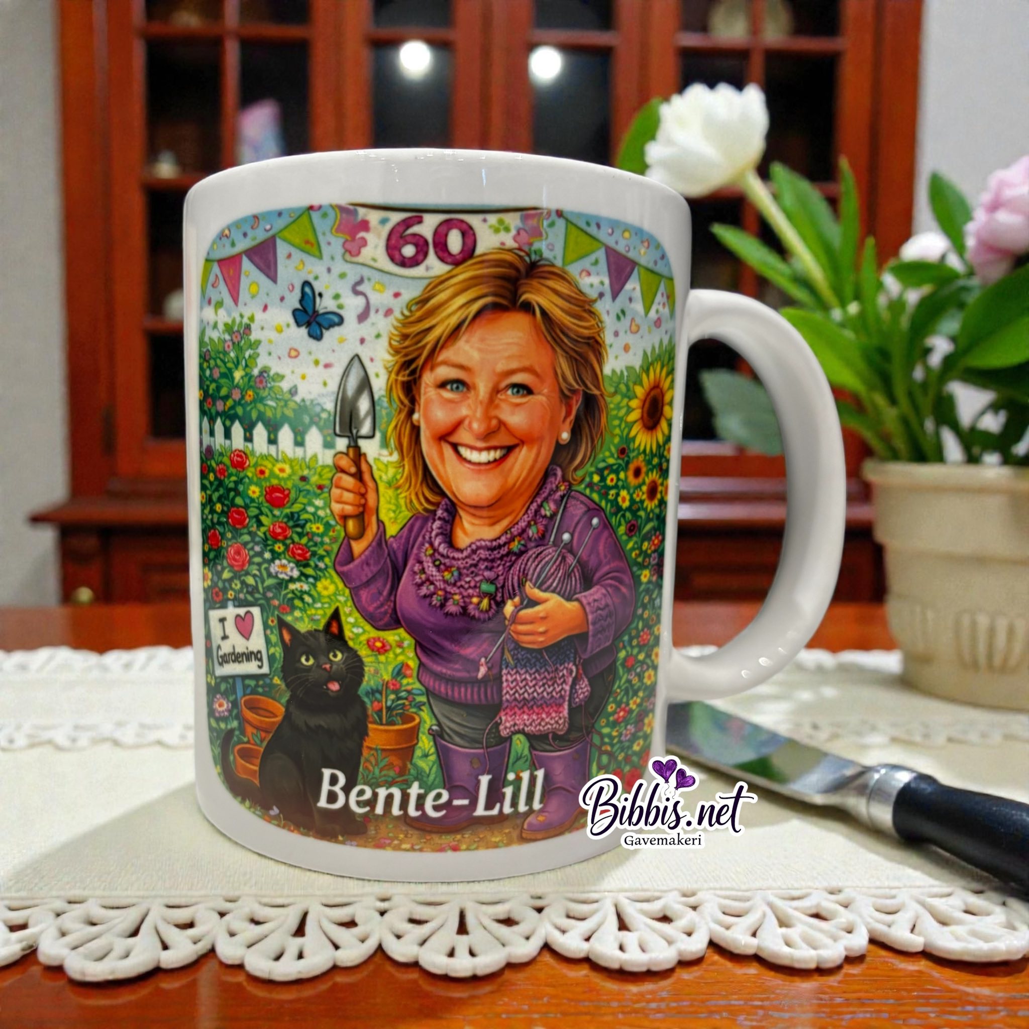 Krus med en personlig karikatur/tekst