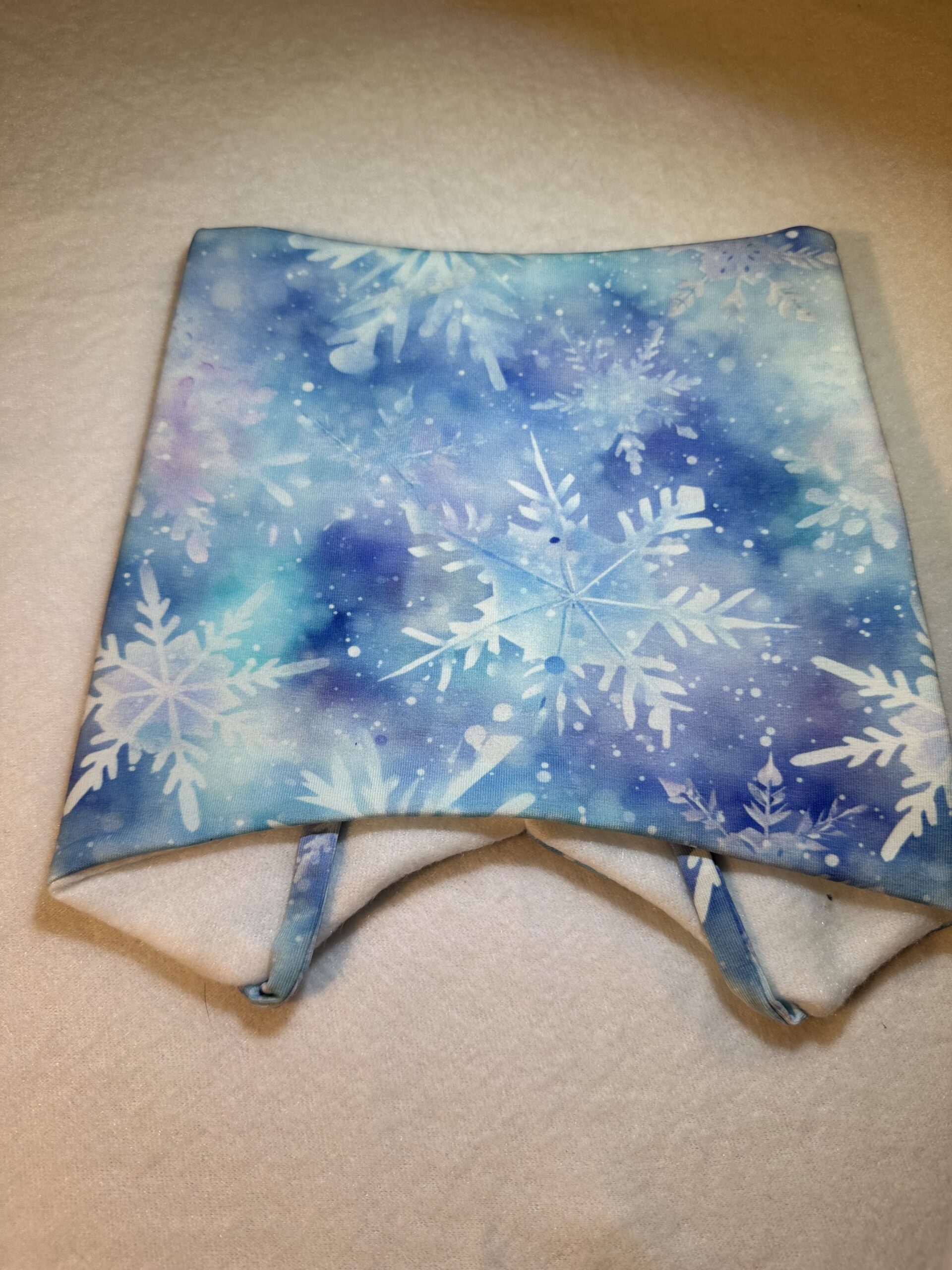 Lue med knyting og god passform. Sydd i jersey med fleecefor.