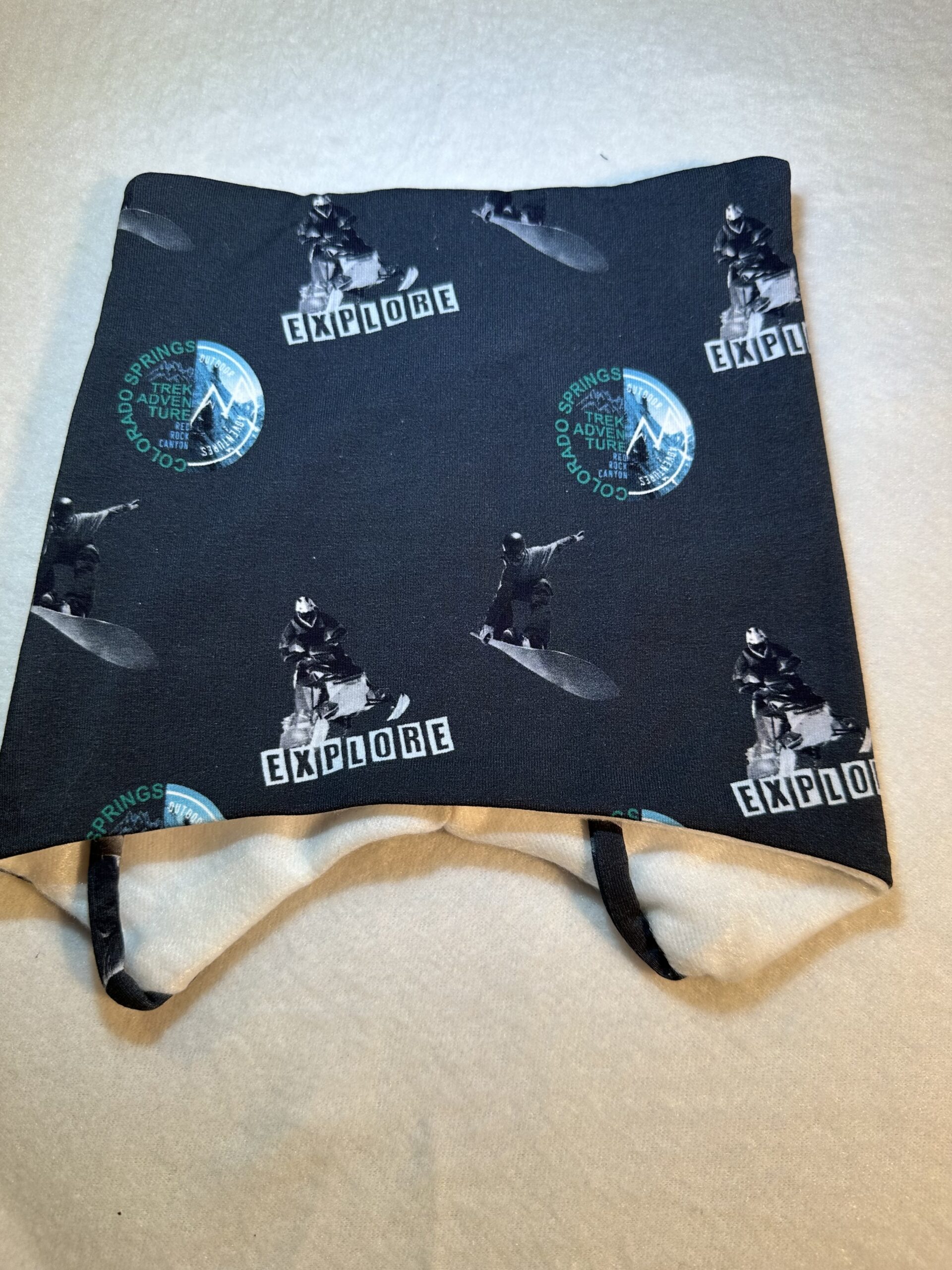 Lue med knyting og god passform. Sydd i jersey med fleecefor, str 2-4 år