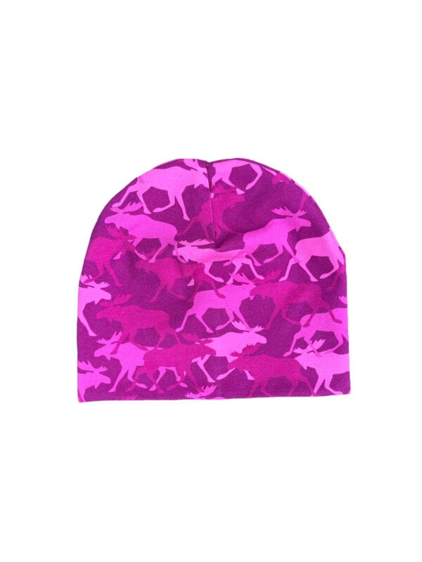 Lue sydd i myk, god dobbel bomullsjersey. Rosa, kul «elg-kamo». God og lun vår- og høstlue.