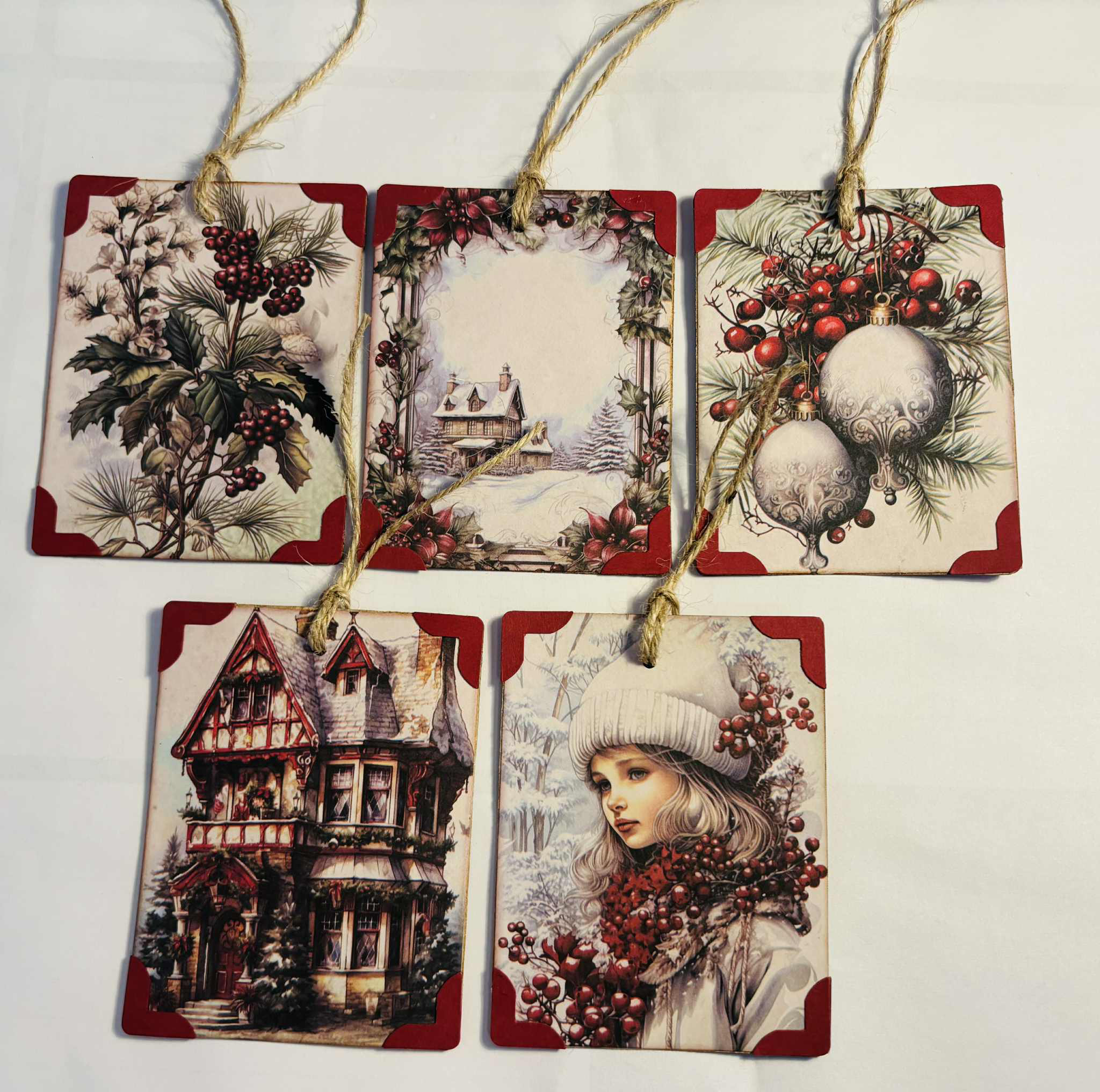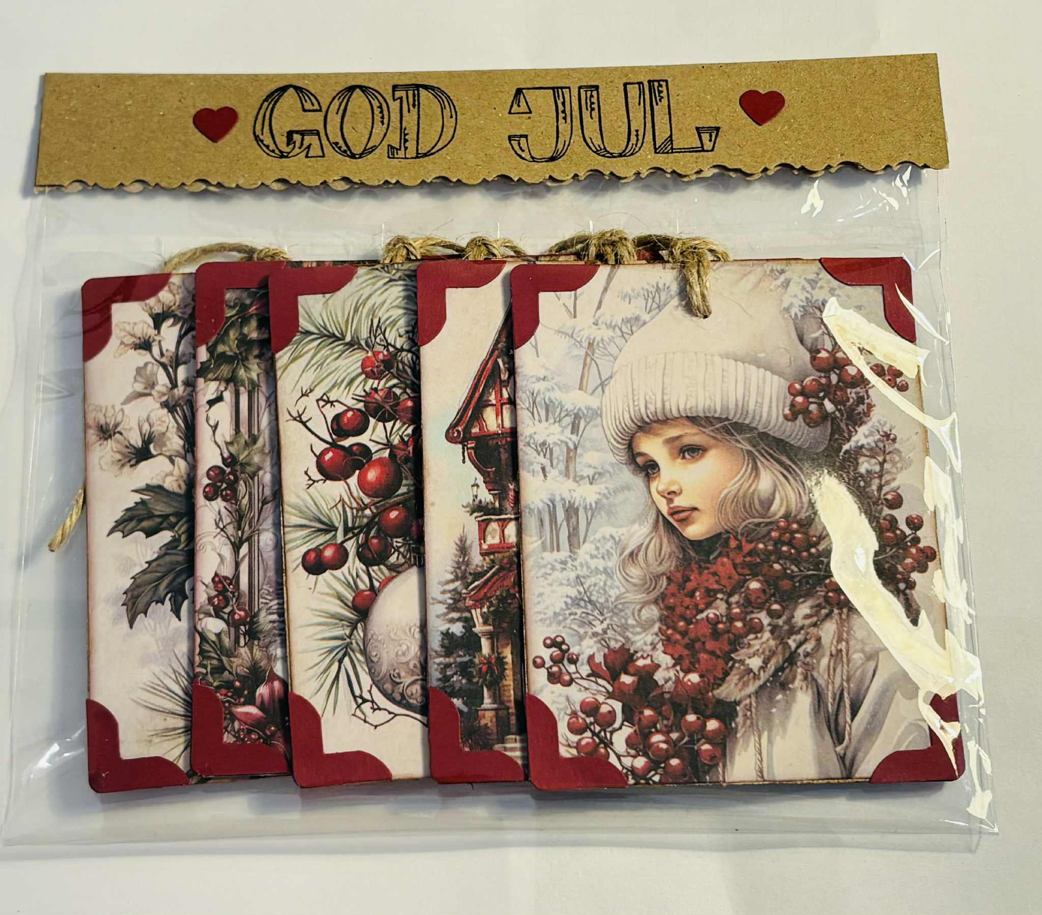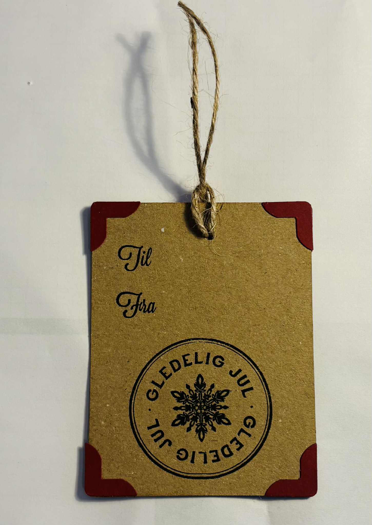 Pakke med 5 stk. håndlagde pakkelapper. De måler ca 9,5 x 7,5 cm.