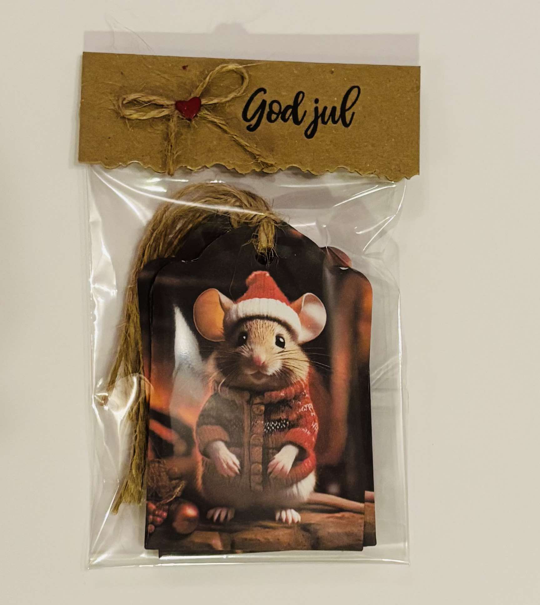 Pakke med 5 stk. håndlagde pakkelapper. De måler ca 8×5 cm.