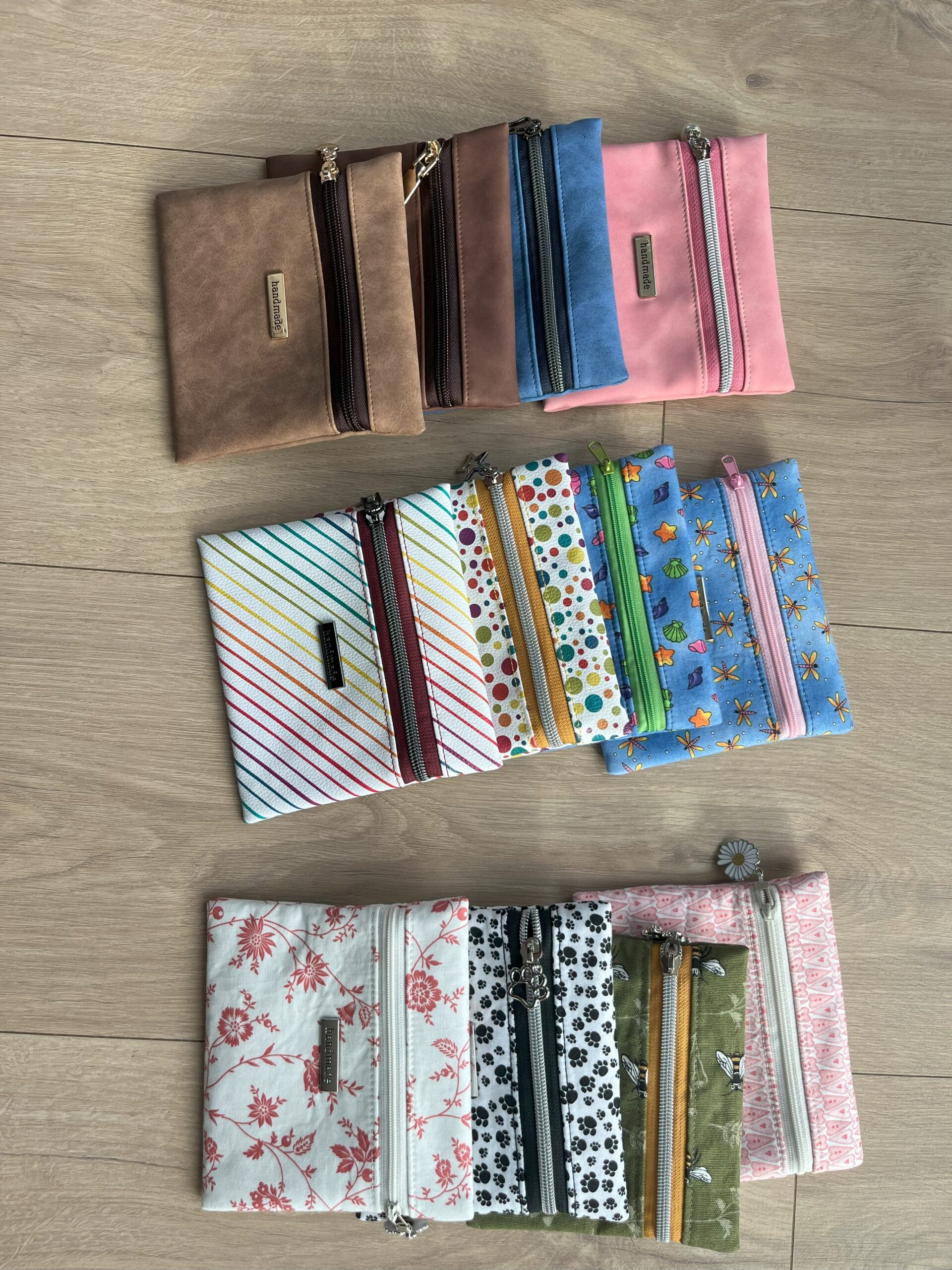 Poser med glidelås i forskjellige farger og mønster. Fine å ha i veska til småting. f.eks. kort, penger, lypsyl, lebestift o.l.
