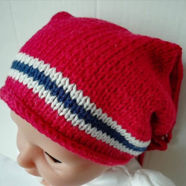Strikka barneskaut i flagget sine fargar. Pyntar fint opp 17 mai antrekket. Strikka i bomullsgarn.