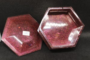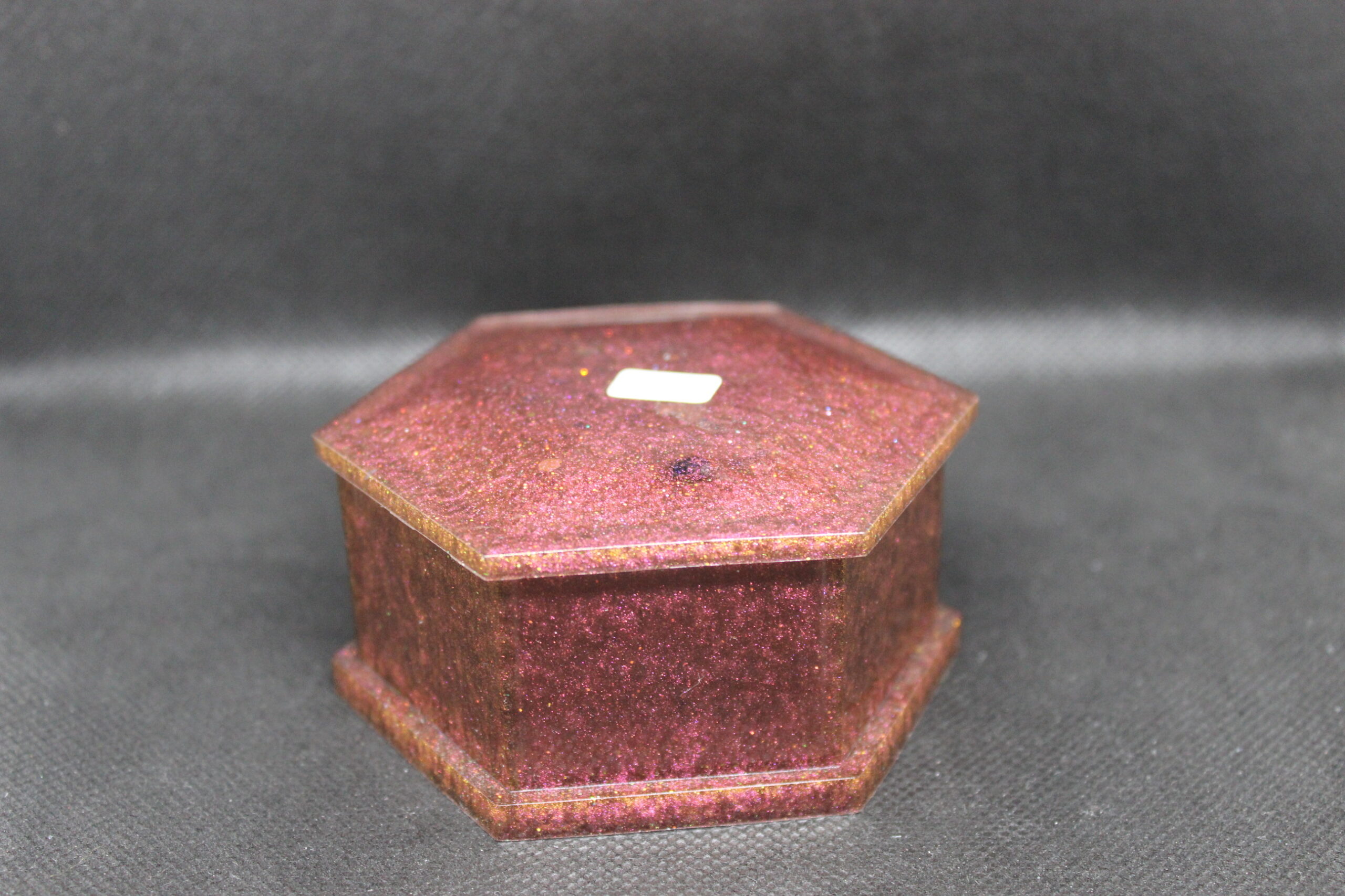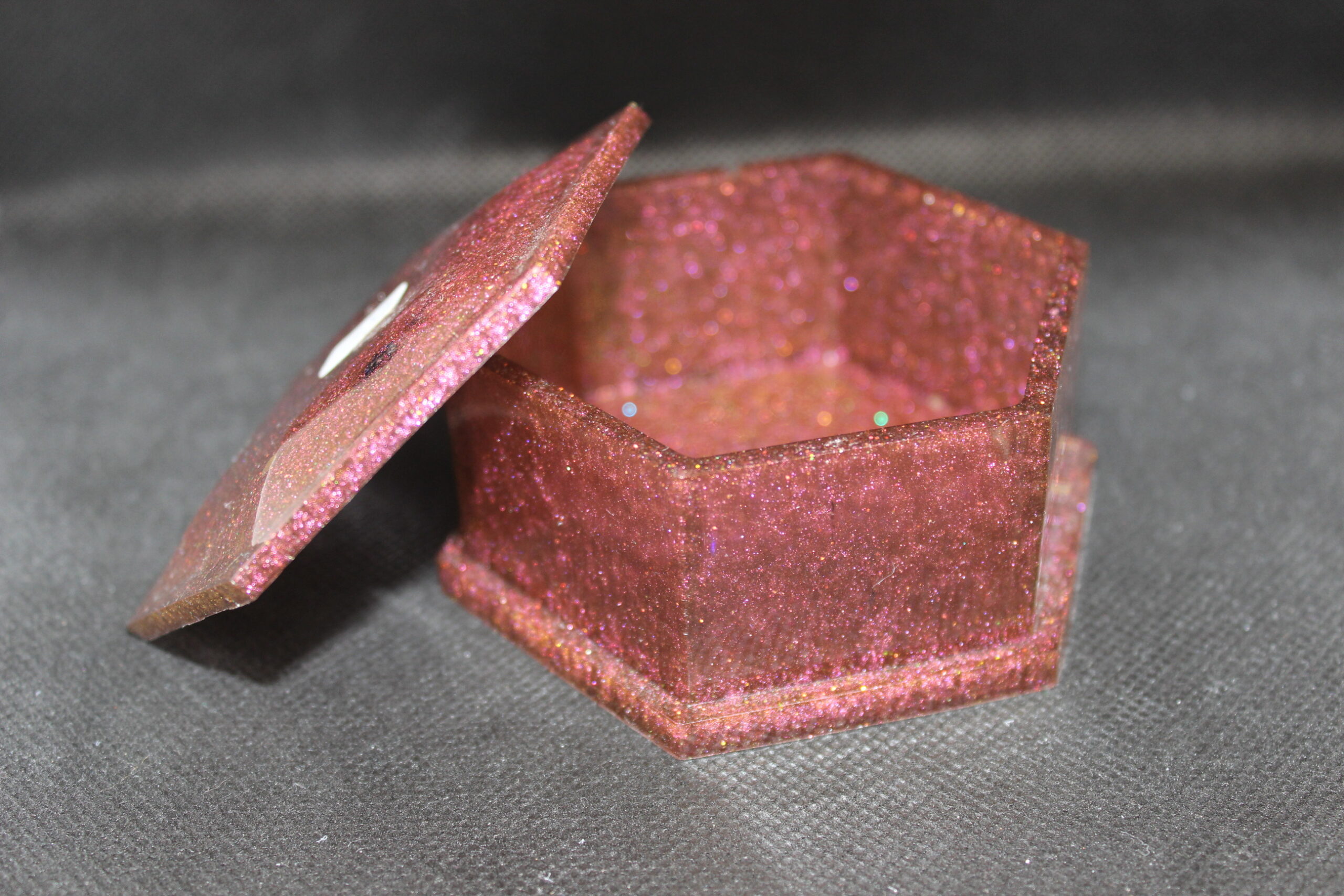 Smykkeskrin i epoksyharpiks, en flott gave til en kvinne eller jente. 7,5 cm i diameter og 3,5 cm høyde.