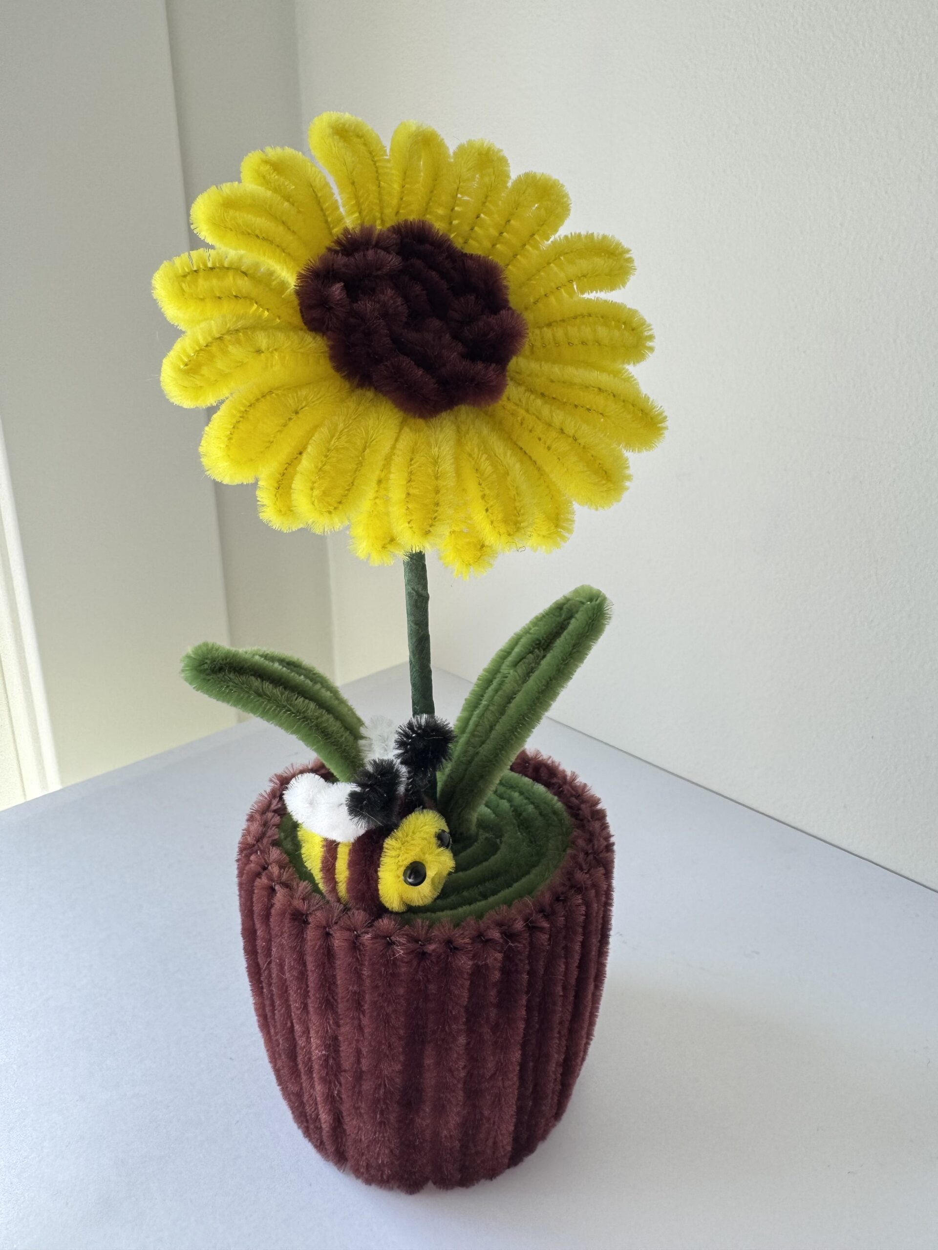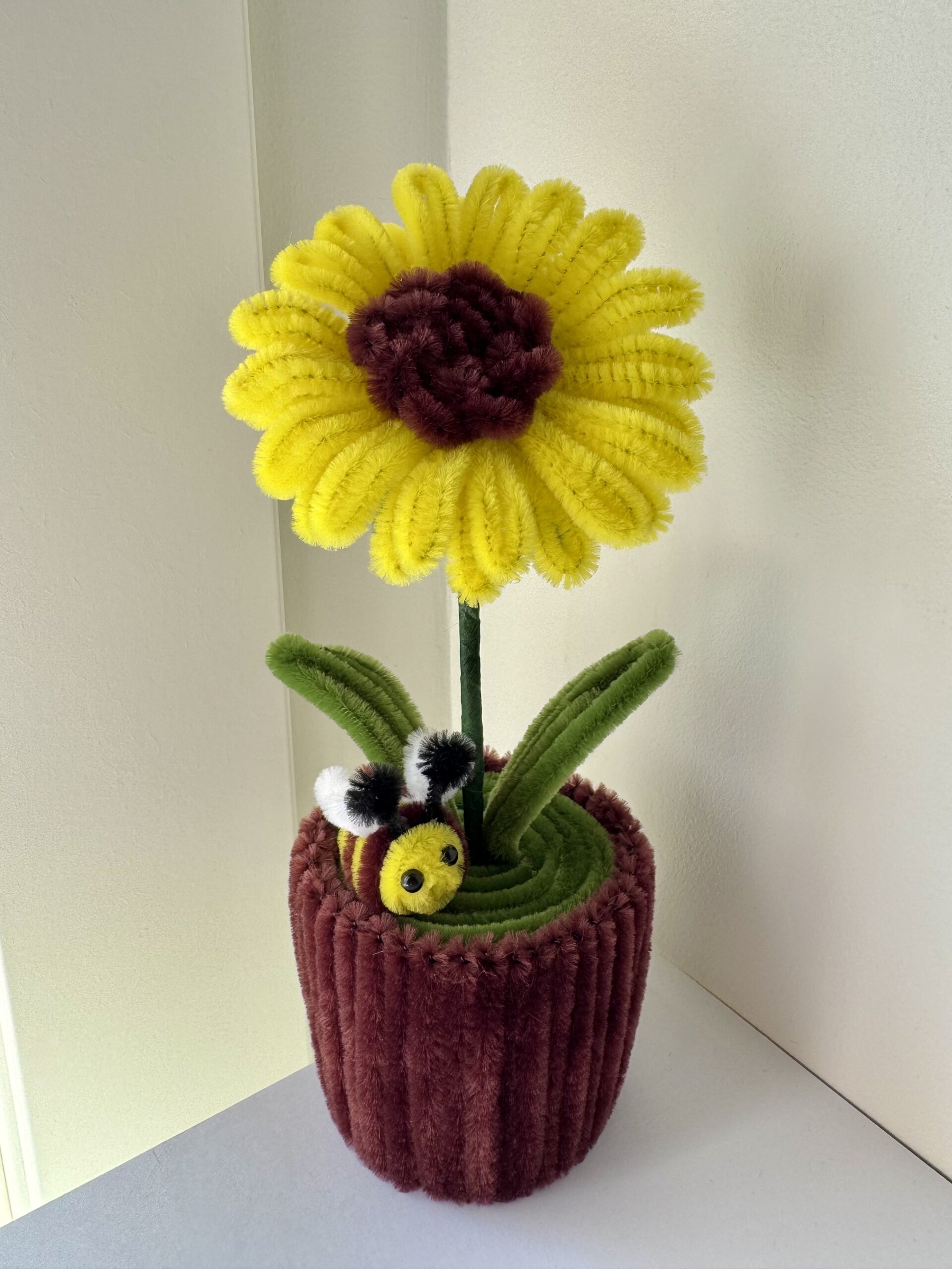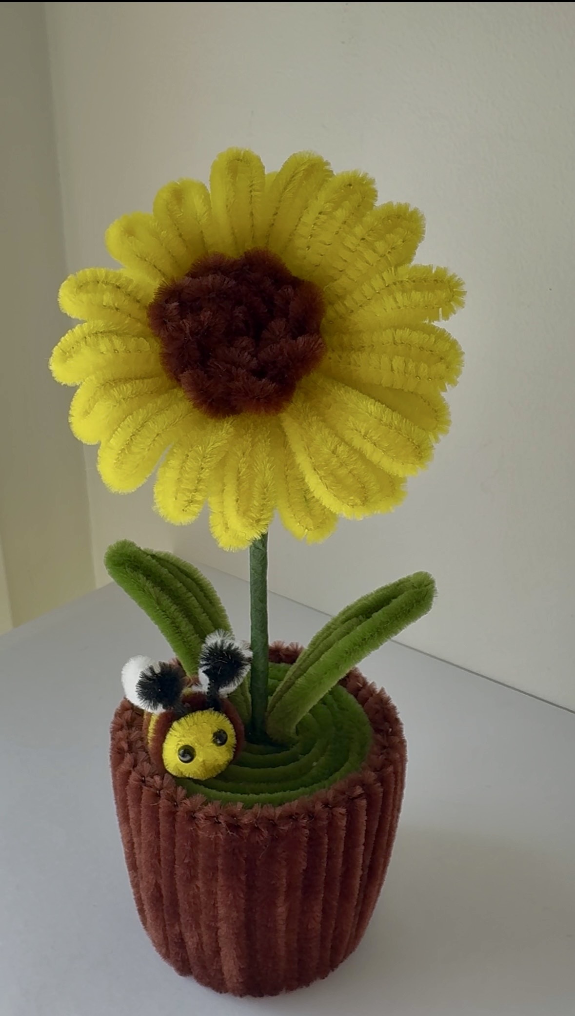 Håndlaget solsikke blomst🤍Denne kan du bruke som pynt ved vinduskarmen eller andre steder. Blomsten passer også perfekt som gave til noen du er glad i🧡Evigvarende blomst trenger verken vanning eller sollys🌸🌿💛