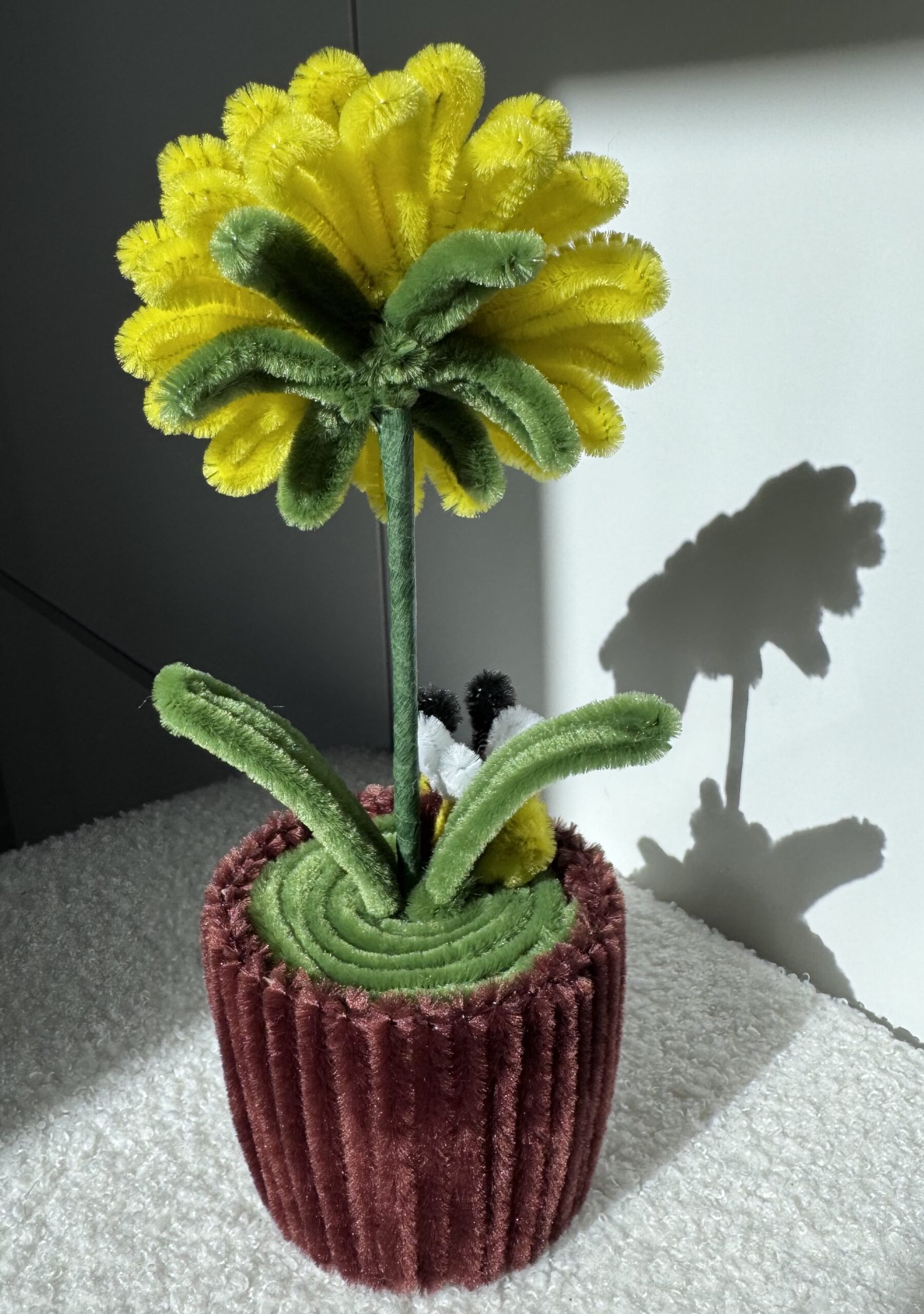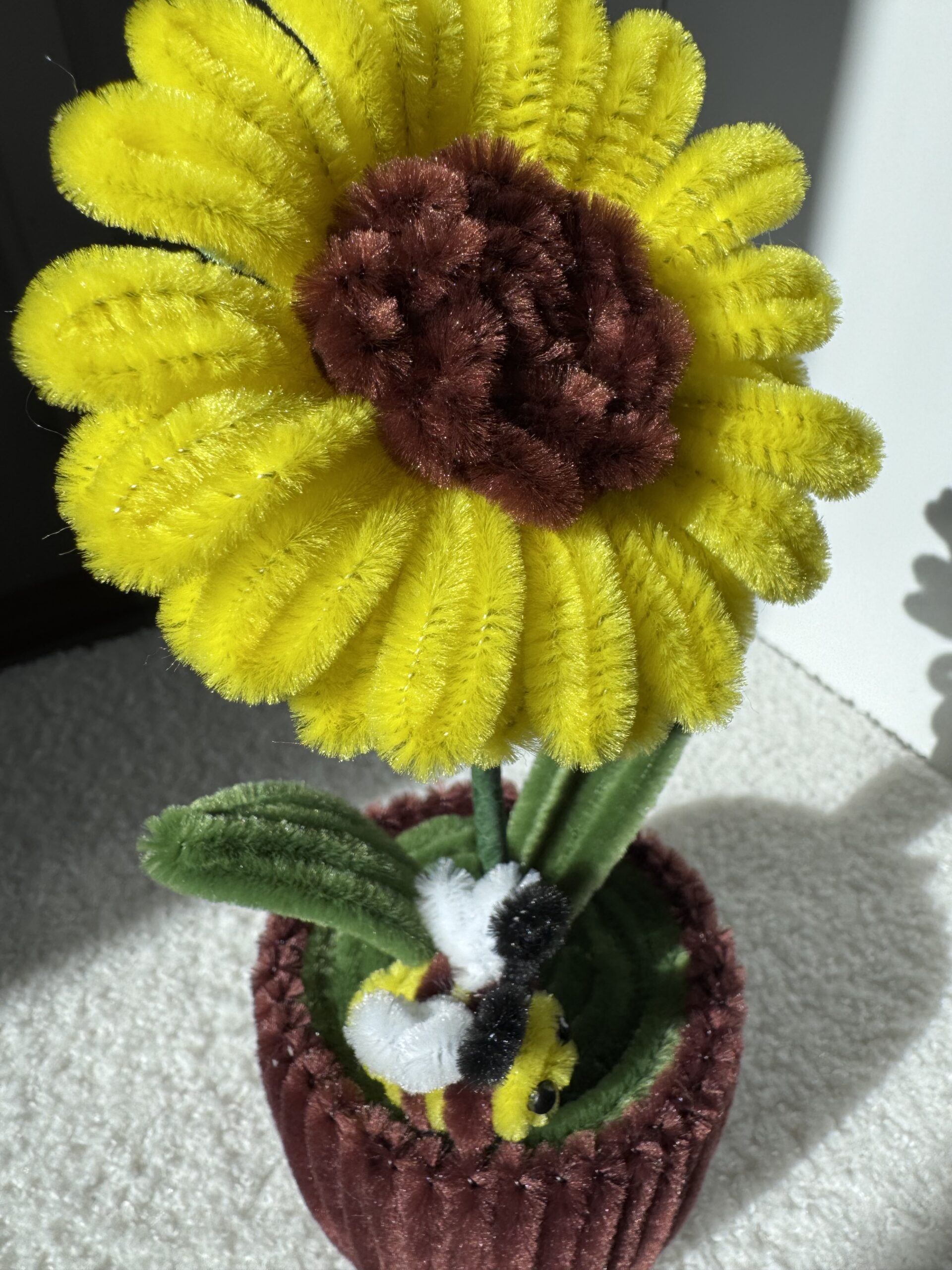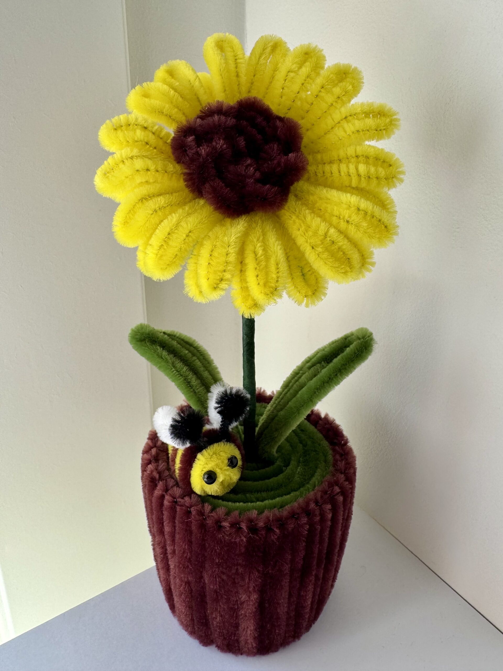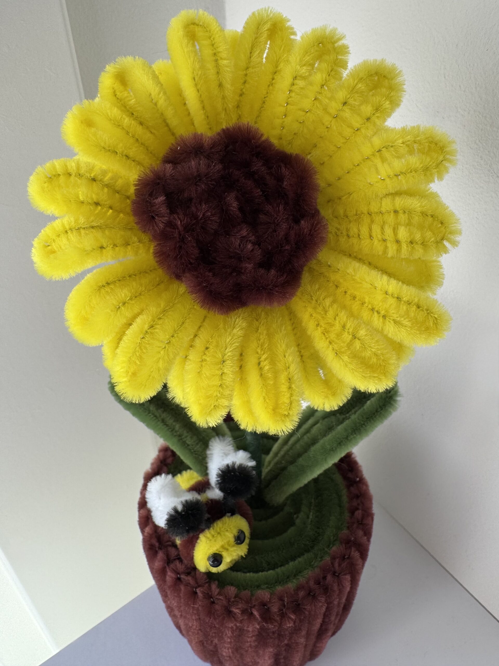 Håndlaget solsikke blomst🤍Denne kan du bruke som pynt ved vinduskarmen eller andre steder. Blomsten passer også perfekt som gave til noen du er glad i🧡Evigvarende blomst trenger verken vanning eller sollys🌸🌿💛