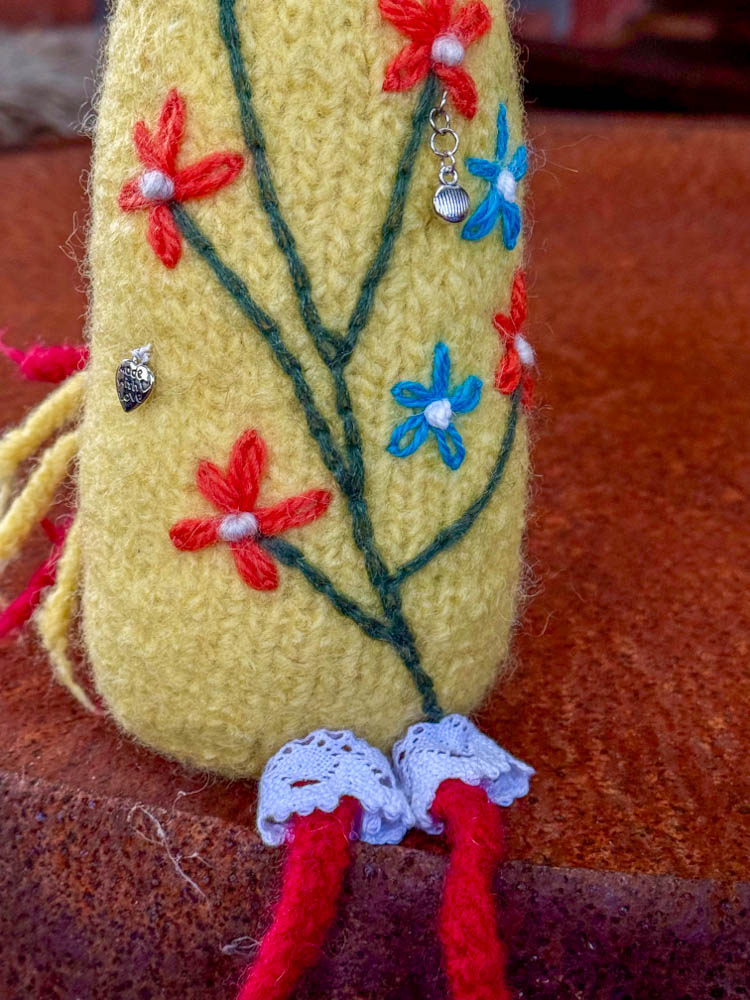 Detaljert strikkeoppskrift på tovet påskehøne med kylling.