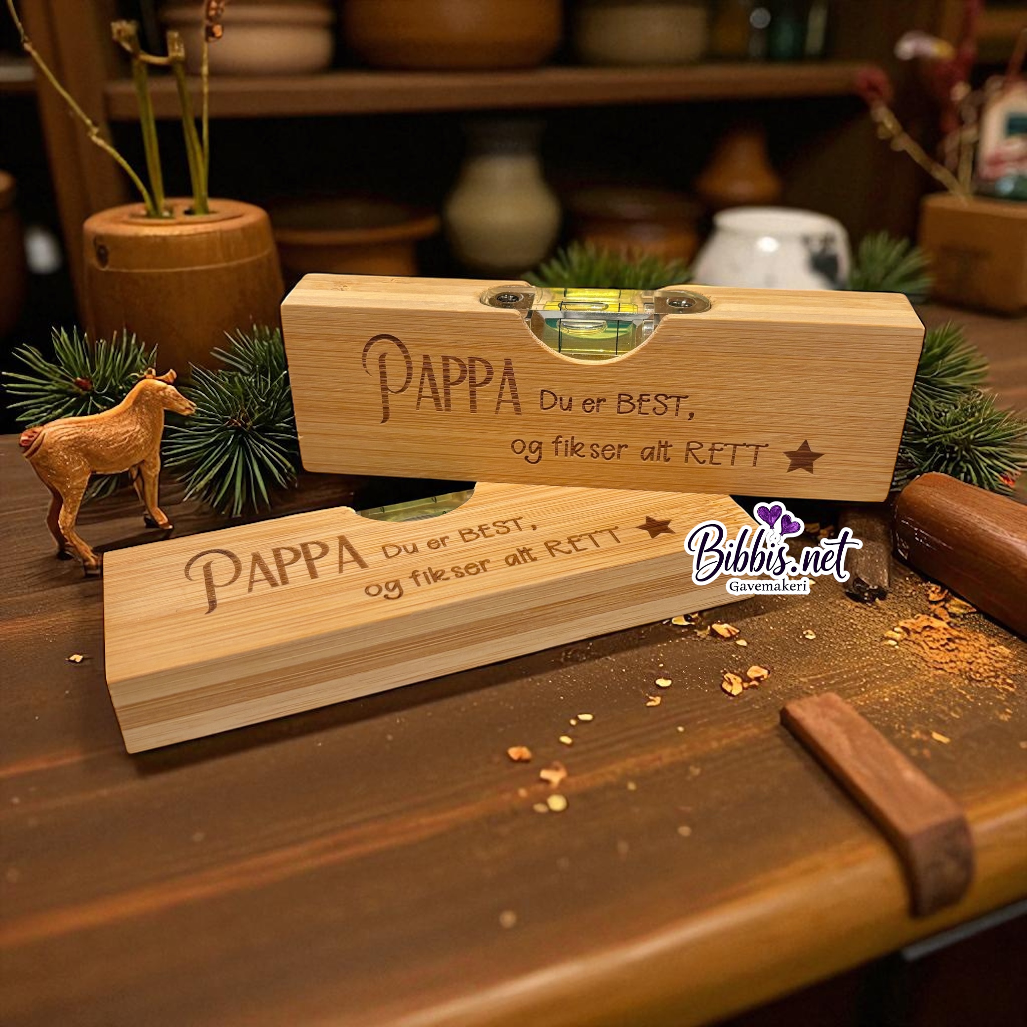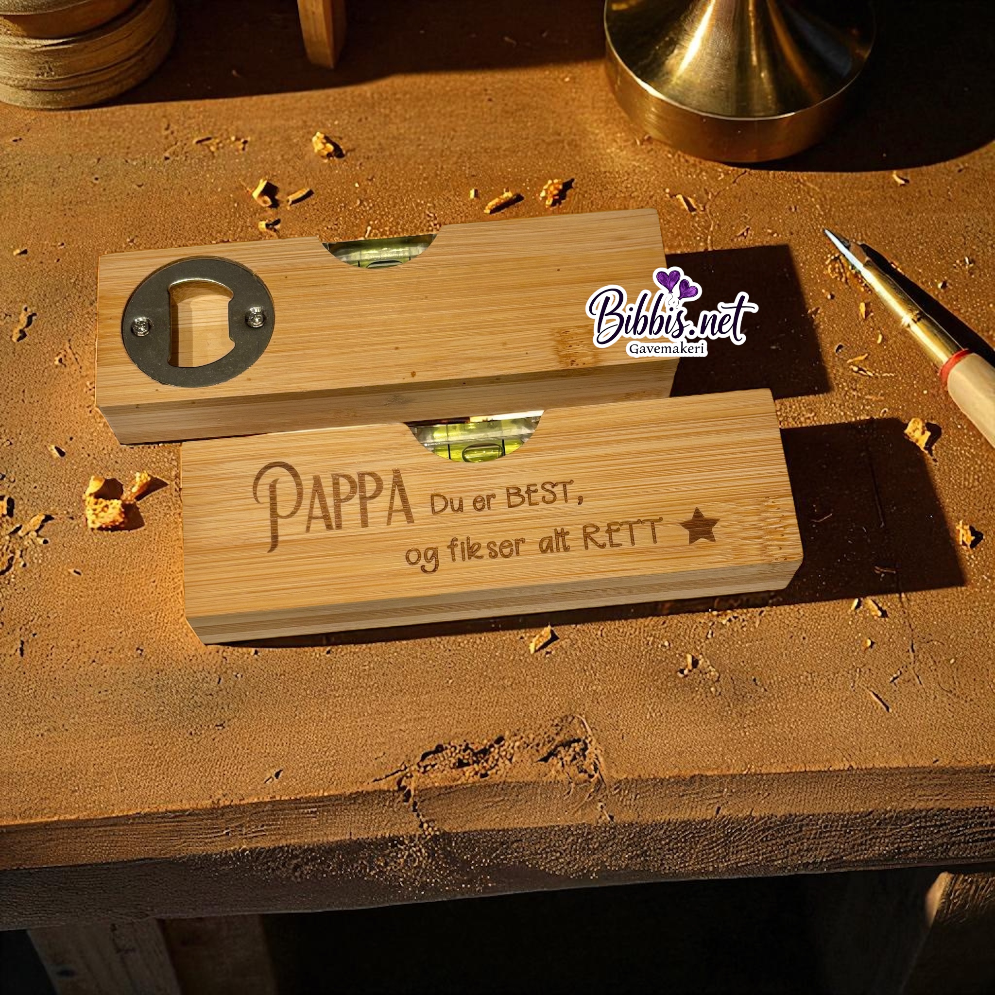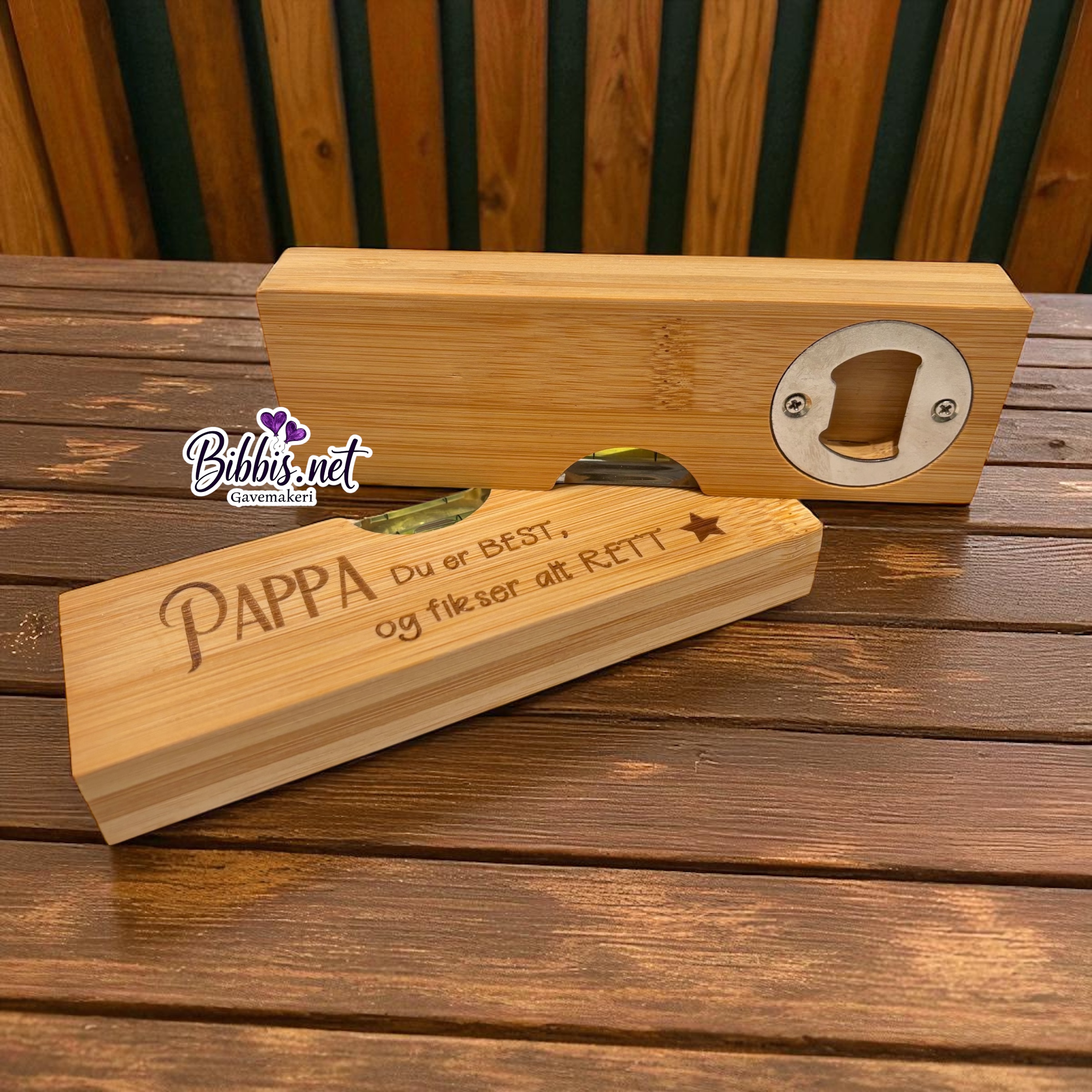 Water med opptrekker på den ene siden. Koselig tekst til far på den andre. Str er ca 15x5x2 og annen tekst kan lages etter ønske.
